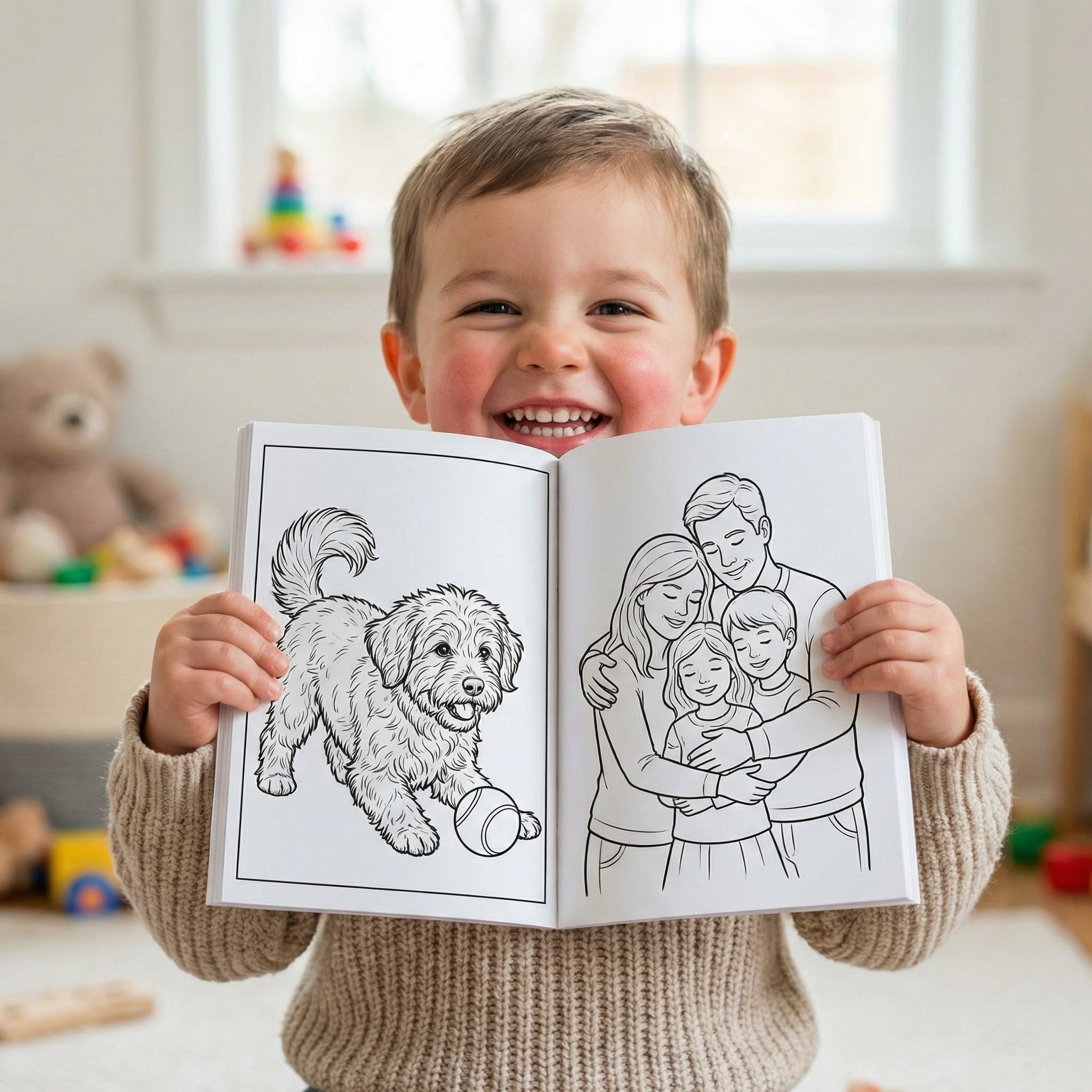 Once you select your coloring book product, you’ll see an upload button on the product page. Click it to choose your photo(s) from your device. Make sure your images are clear, well-lit, and in.jpgor.pngformat. The uploaded images will be sent to us when you complete your order.
